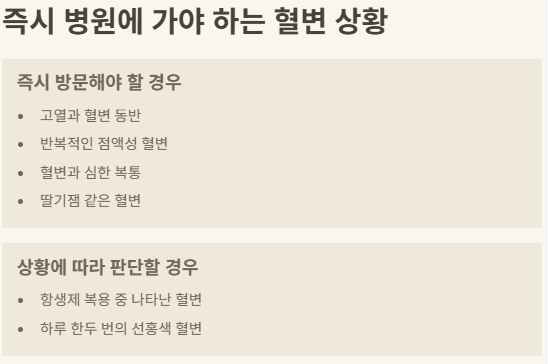 특히 반복적이거나 고열, 복통을 동반한 혈변은