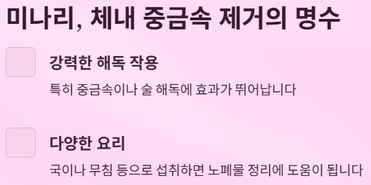 특히 중금속이나 술 해독에 효과가 뛰어납니다.